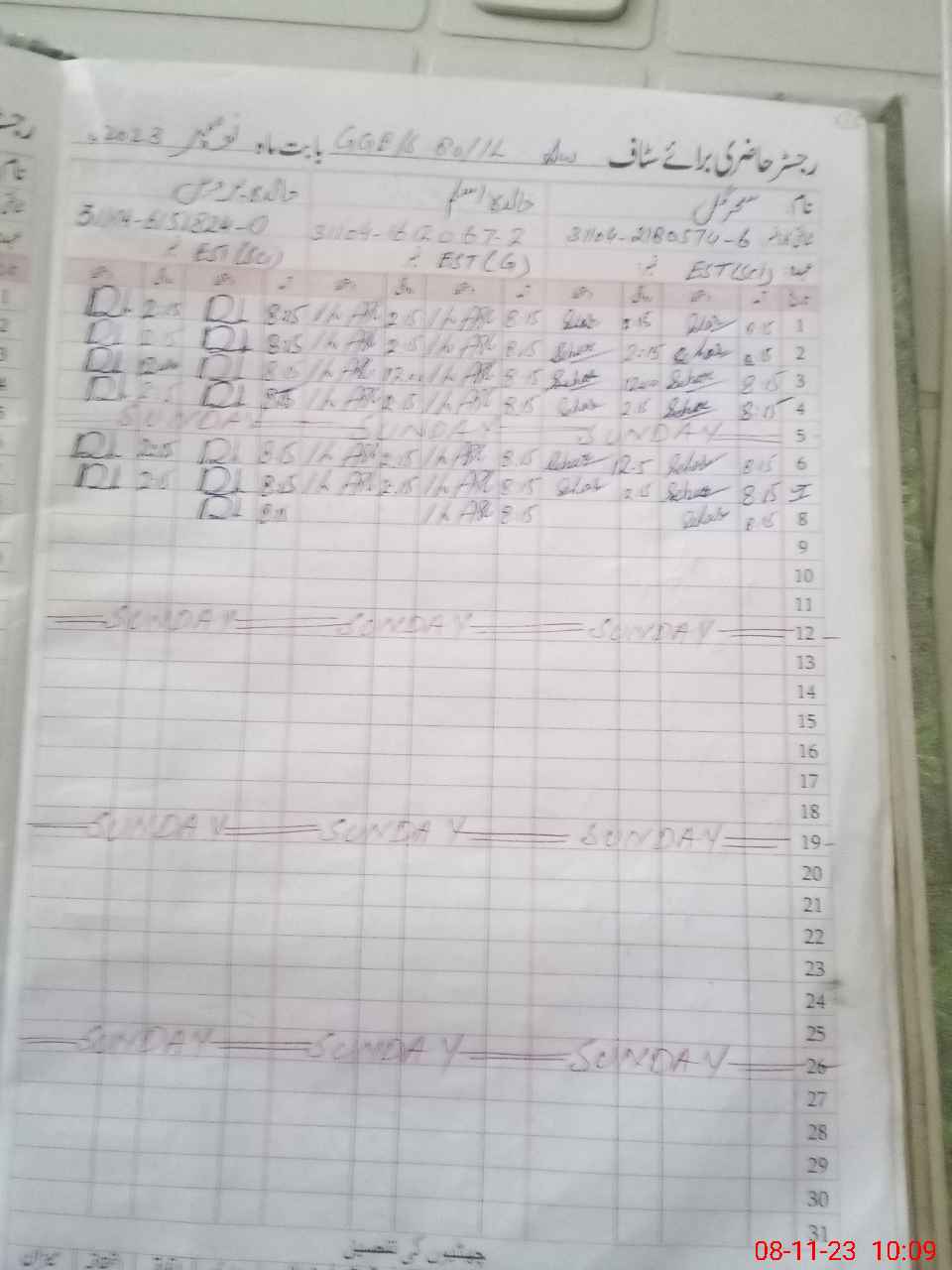 | CNIC | Full Name | Designation | R/C | Absence During Last Calender Month |