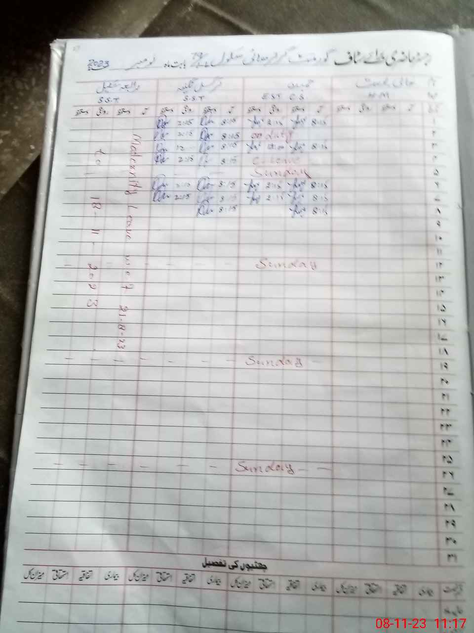 | CNIC | Full Name | Designation | R/C | Absence During Last Calender Month |