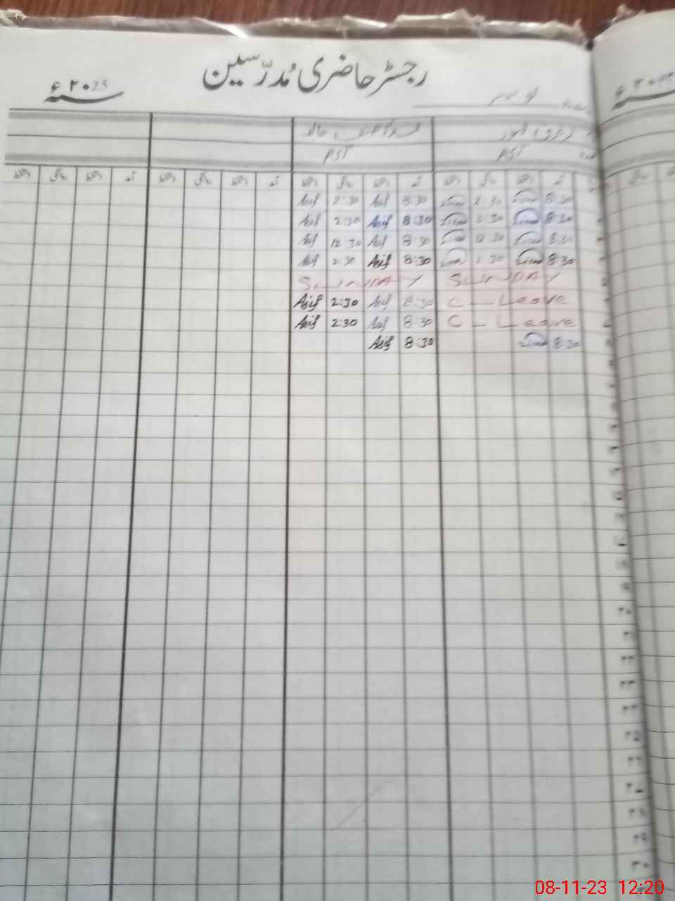 | CNIC | Full Name | Designation | R/C | Absence During Last Calender Month |