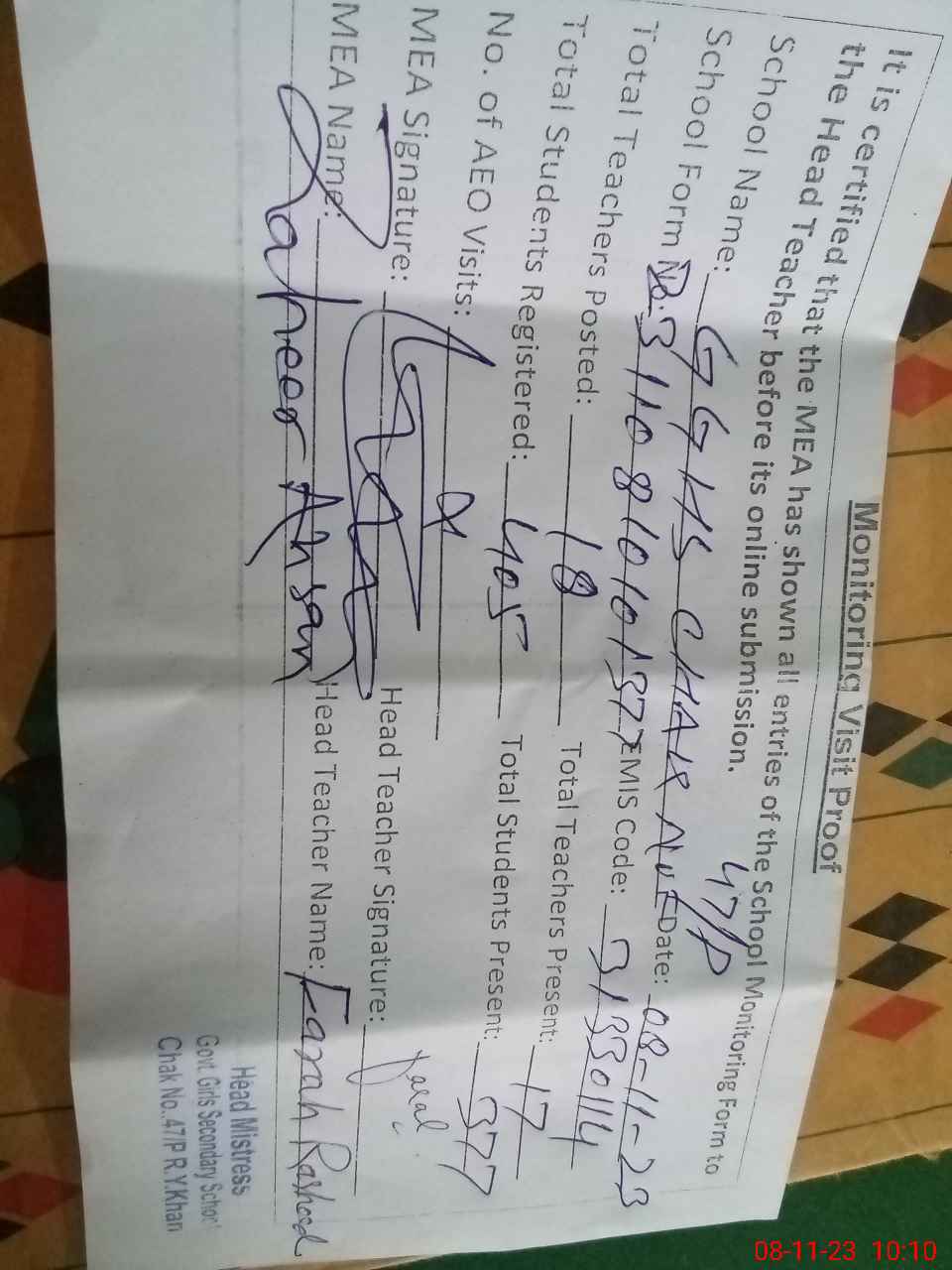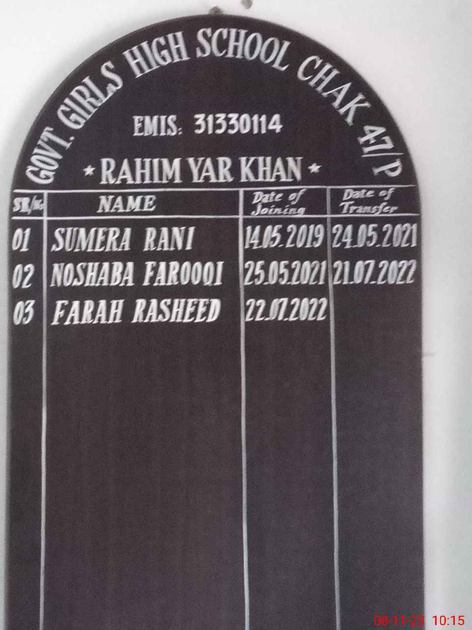| EMIS Code: 31330114 | Name of School: GGHS 47/P | |||