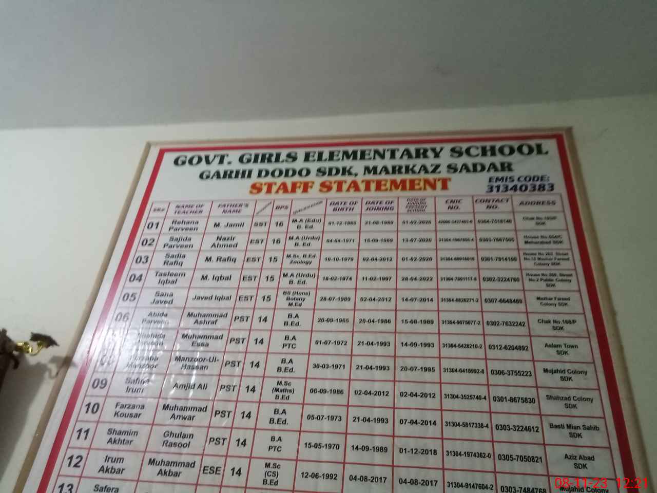 | EMIS Code: 31340383 | Name of School: GGES GHARI DADO | |||