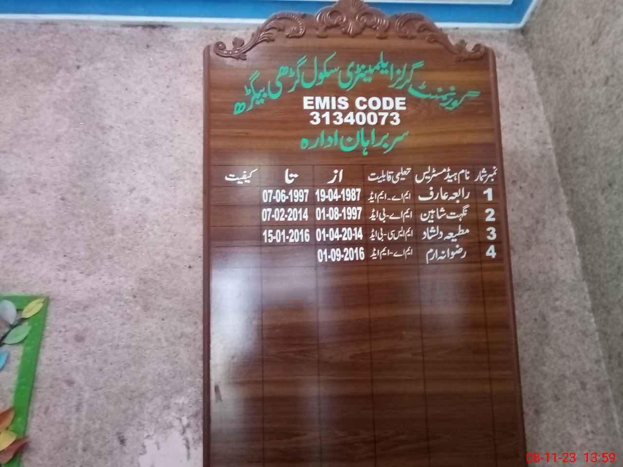 | EMIS Code: 31340073 | Name of School: GGES GHARI BEGHAR | |||