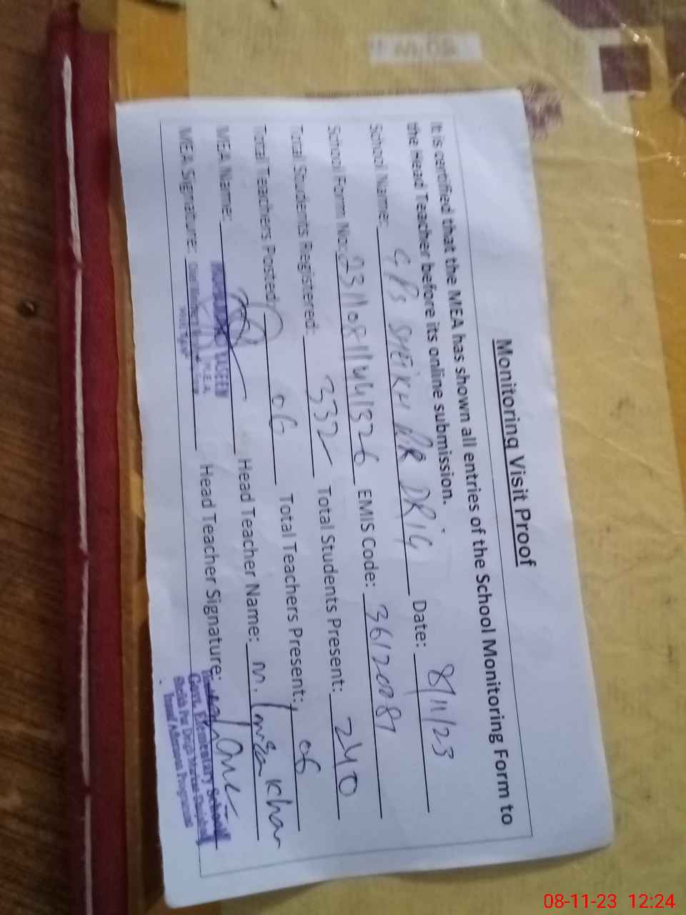 | EMIS Code: 36120081 | Name of School: GPS SHEIKH PUR DRIG P/O GARDEZPUR | |||