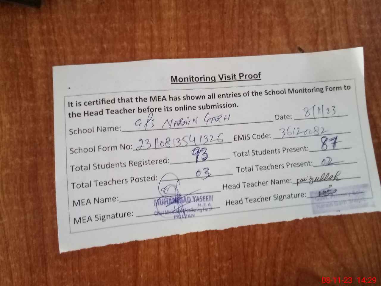 | EMIS Code: 36120082 | Name of School: GPS NARAIN GARH P/O GARDEZPUR SHUJABAD | |||
