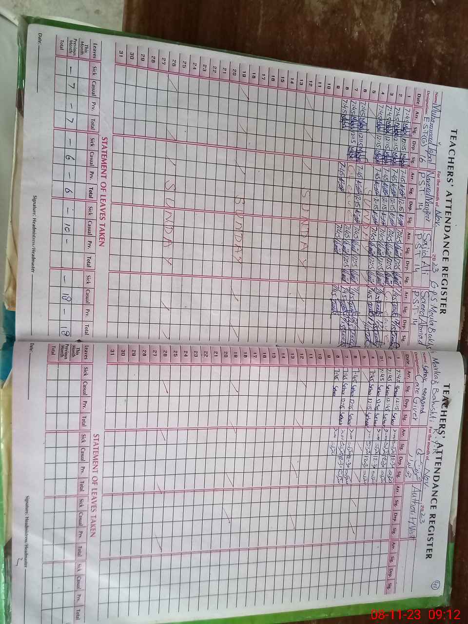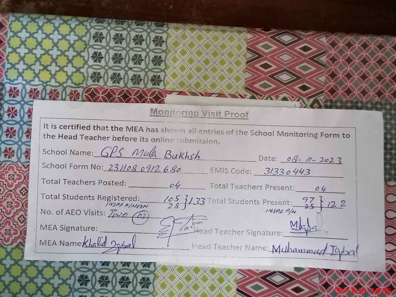 | Attendance Register | Head Teacher | MEA with School | Visit Proof |