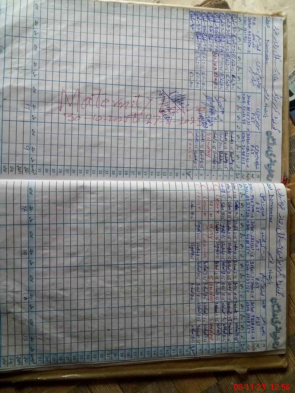 | Leave | Duty | Absent | Maternity | Medical | Ex- Pak |