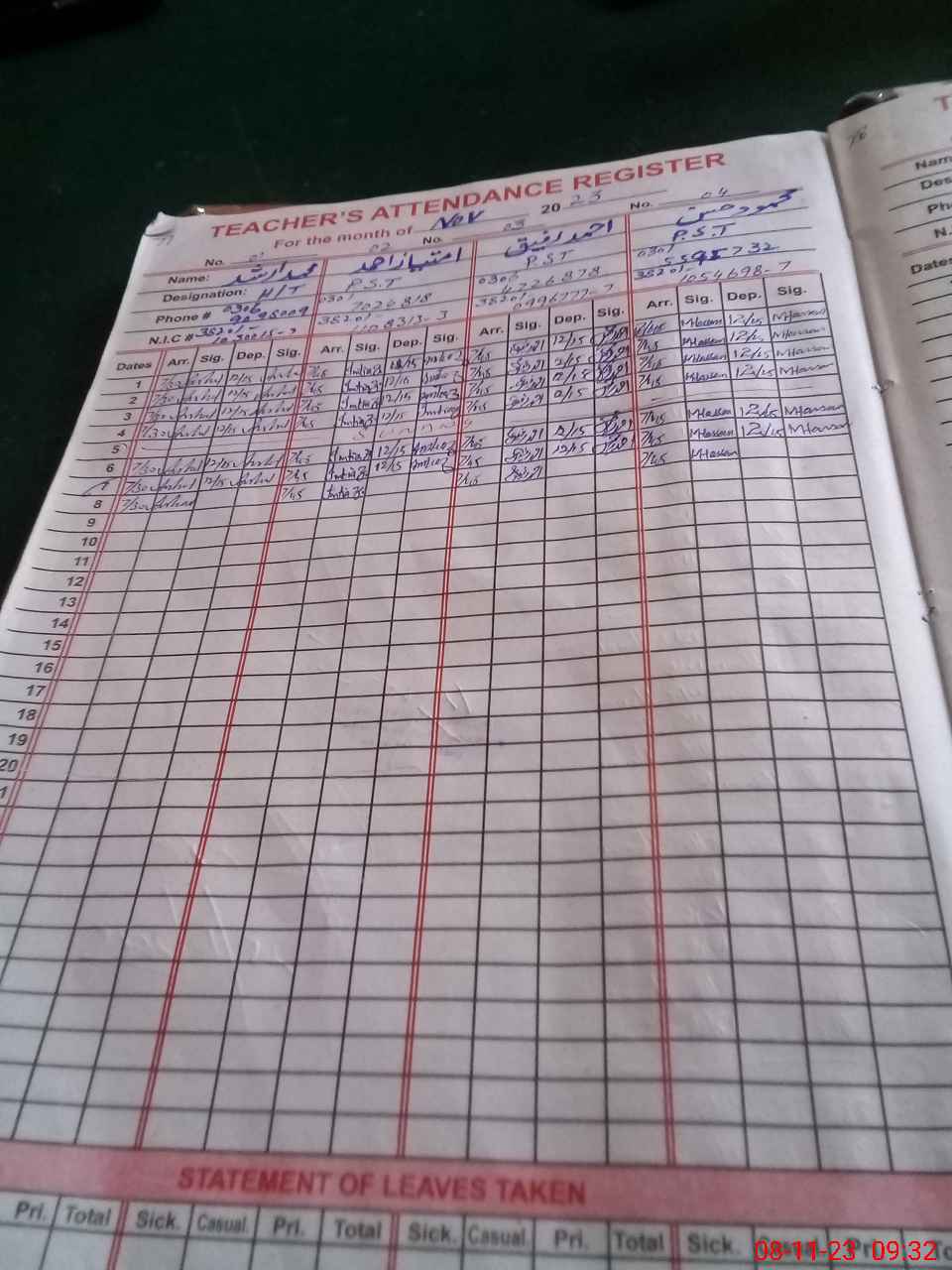 | Name: Mu**** Ar**** Designation: (School Headmaster's/Headmistress's) PST Phone/Cell Number: 03**** |