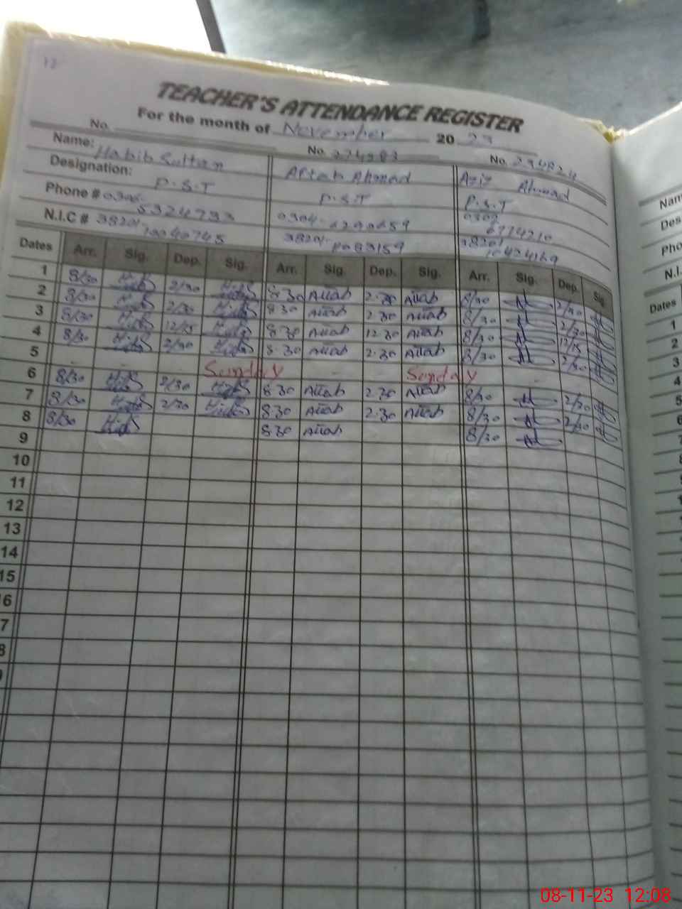 | Name: Ha**** Su**** Designation: (School Headmaster's/Headmistress's) PST Phone/Cell Number: 03**** |