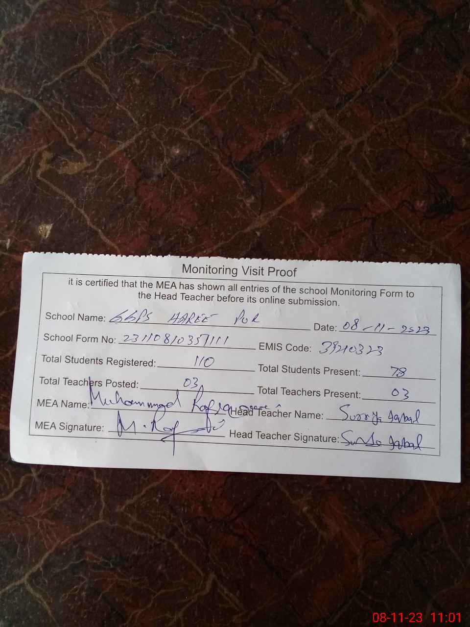 | EMIS Code: 39210323 | Name of School: GGPS HAREE PUR | |||