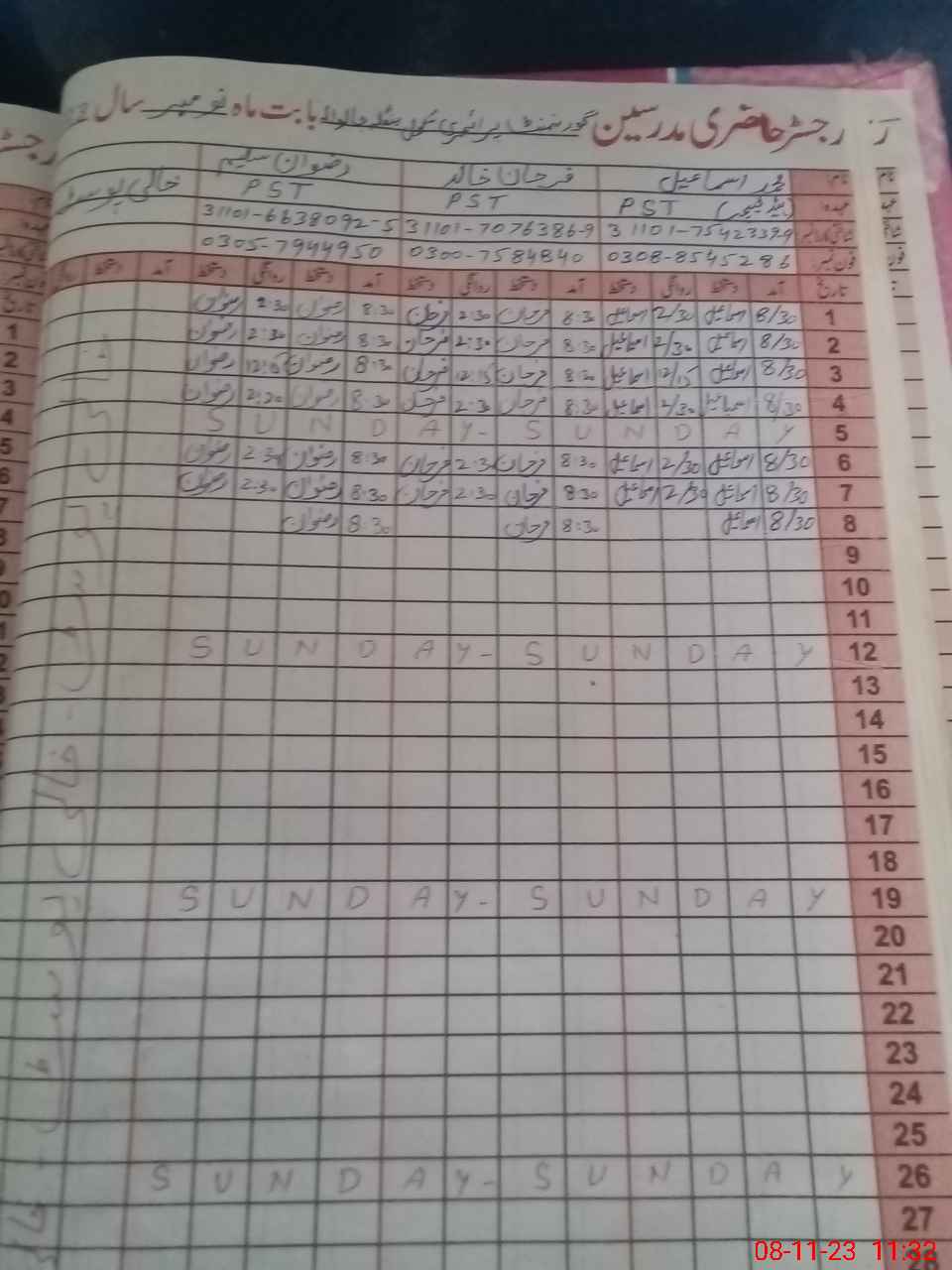 | Name: MU**** IS**** Designation: (School Headmaster's/Headmistress's) PST Phone/Cell Number: 03**** |