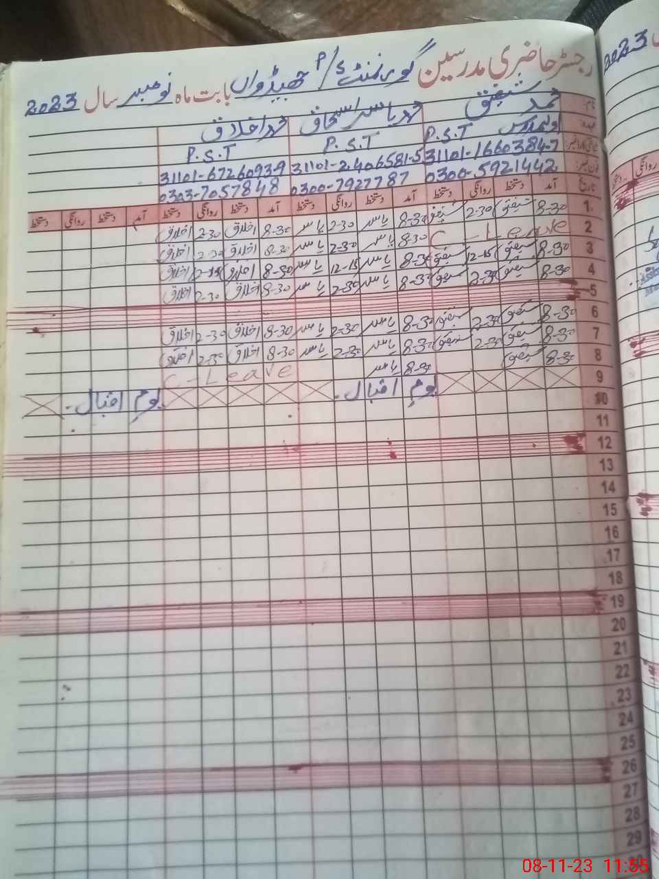 | Name: MU**** As**** Ul**** Designation: (School Headmaster's/Headmistress's) PST Phone/Cell Number: 03**** |