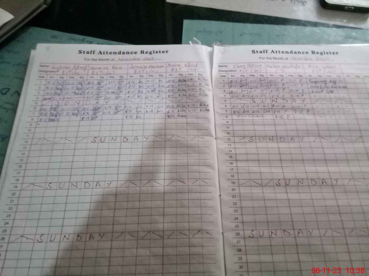 | Remarks (Use Separate Page if Required): Hina saleem EST considered absent as her letter is not vailed Confirm by sdp Atta sb dmo office | |||||