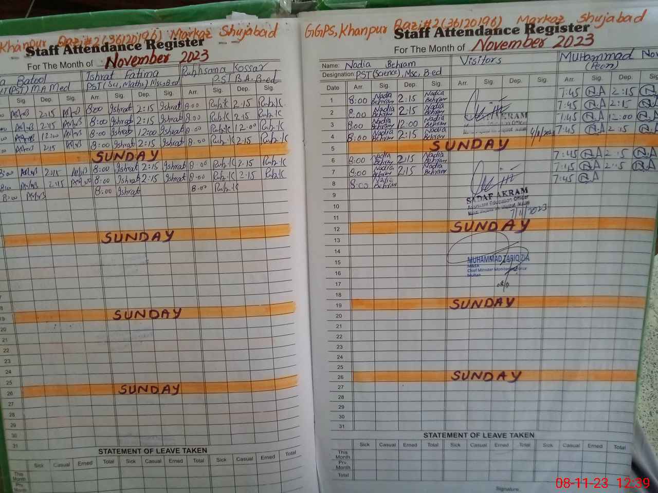 | Remarks (Use Separate Page if Required): Attendance according to roznamcha | |||||
