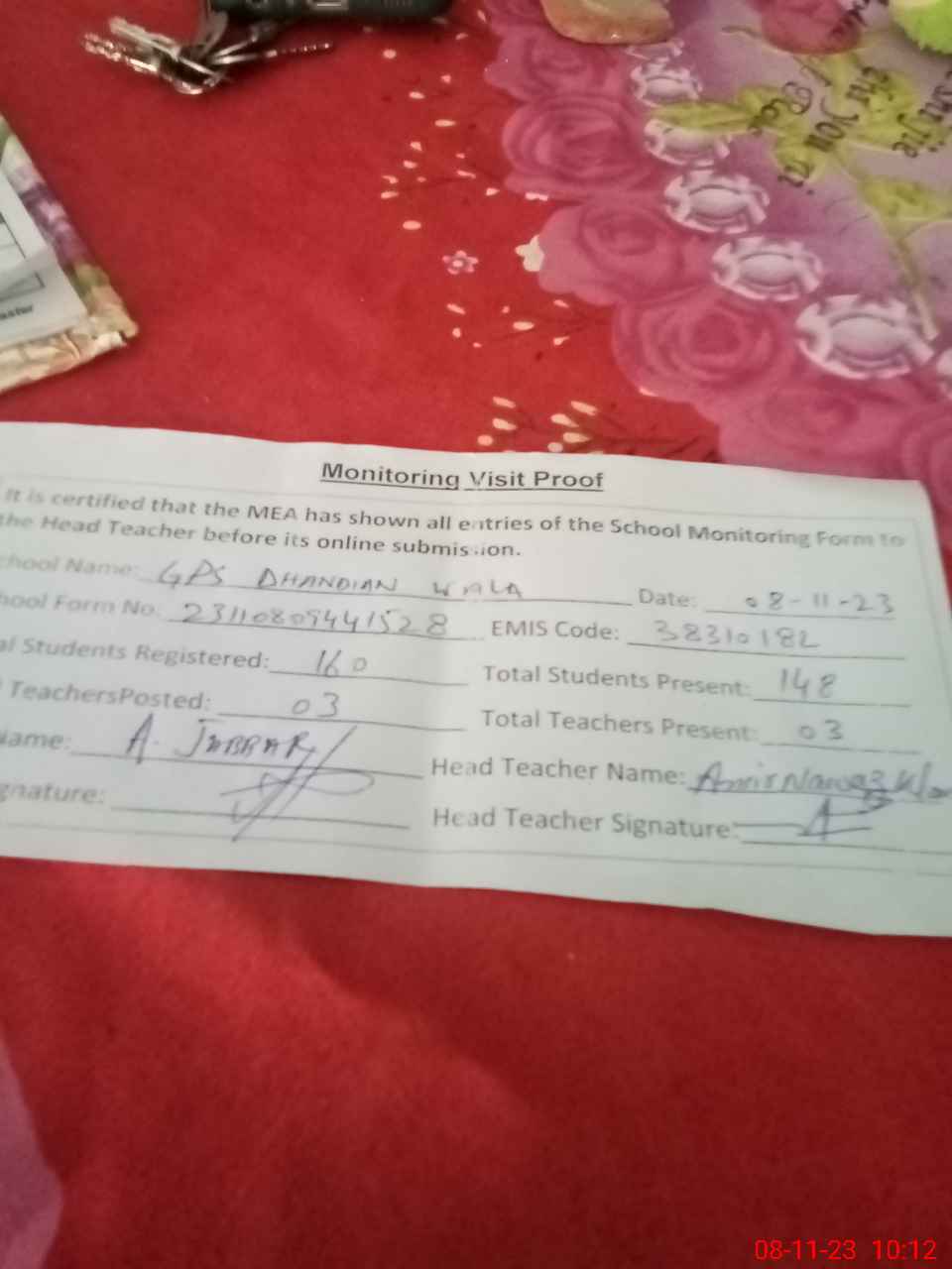 | EMIS Code: 38310182 | Name of School: GPS DHANDIAN WALA | |||