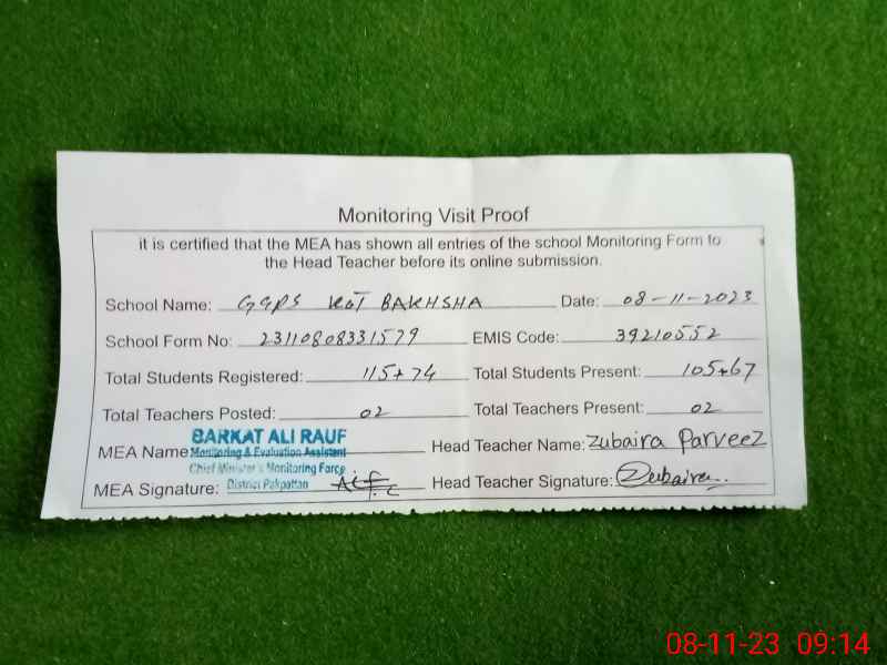 | EMIS Code: 39210552 | Name of School: GGPS KOT BAKHSHA | |||