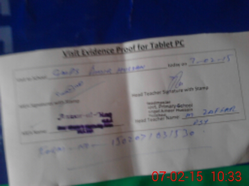 | Attendance Register | Head Teacher | MEA with School | Visit Proof |
