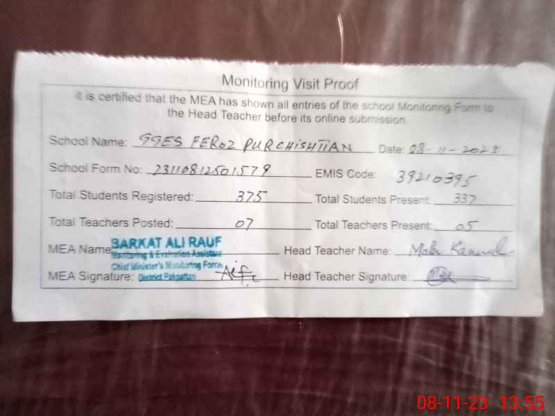 | EMIS Code: 39210395 | Name of School: GGES FEROZ PUR CHISHTIAN | |||