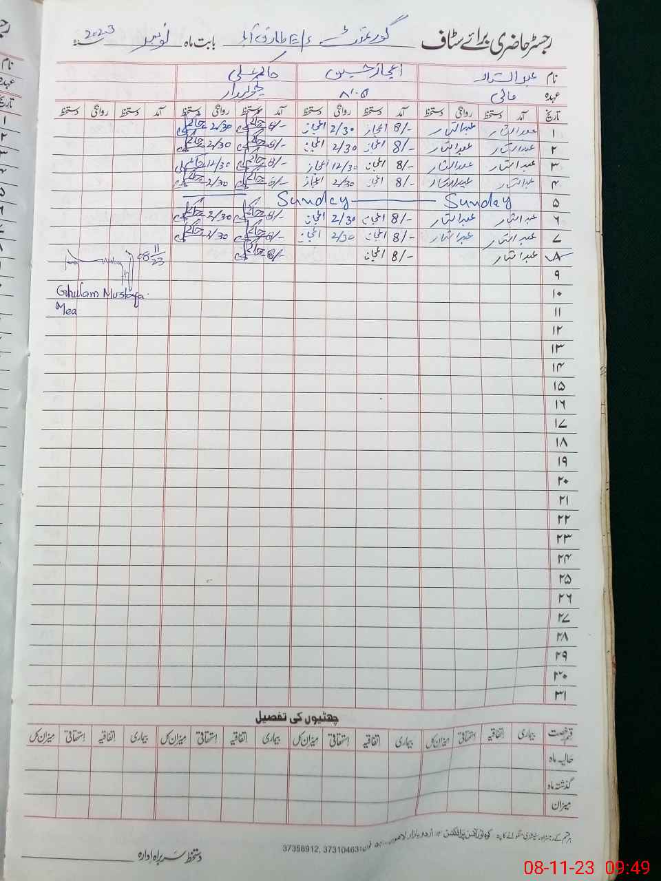| CNIC | Full Name | Designation | R/C | Absence During Last Calender Month |
