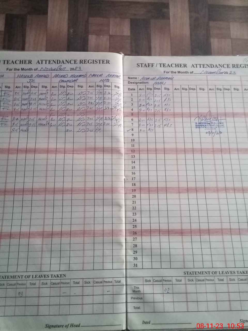 | Total no. of Classrooms: 11 No. of Classrooms Used for Teaching: 10 No. of Classrooms Storing Old Furniture, FTBs, etc: 0Comments if Any: Fareeda Yasmin SST is absent unauthorised since 05 September 2023 Her ex Pakistan leave is forwarded to CEO office but still not sanctioned |