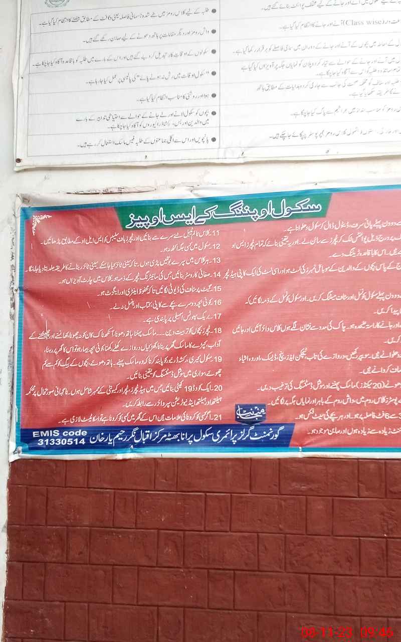 | District: RAHIMYAR KHAN | Tehsil: RAHIMYAR KHAN | Markaz: IQBAL NAGAR-FEMALE | Level: Primary | |