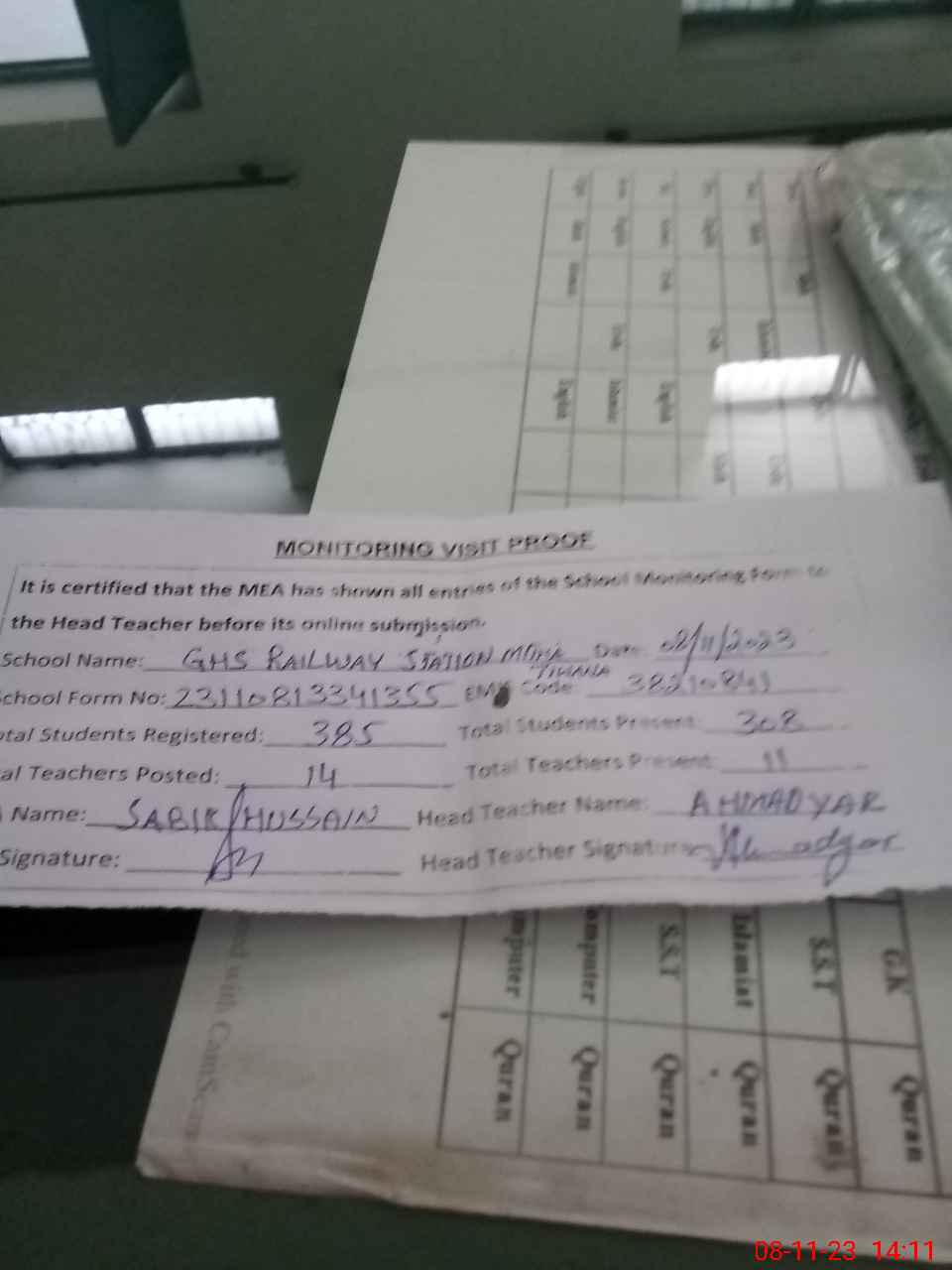 | EMIS Code: 38210841 | Name of School: GHS RAILWAY STATION MITHA TAWANA | |||
