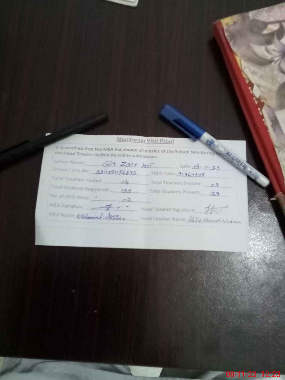 | EMIS Code: 31340108 | Name of School: GPS ZOOR KOT | |||