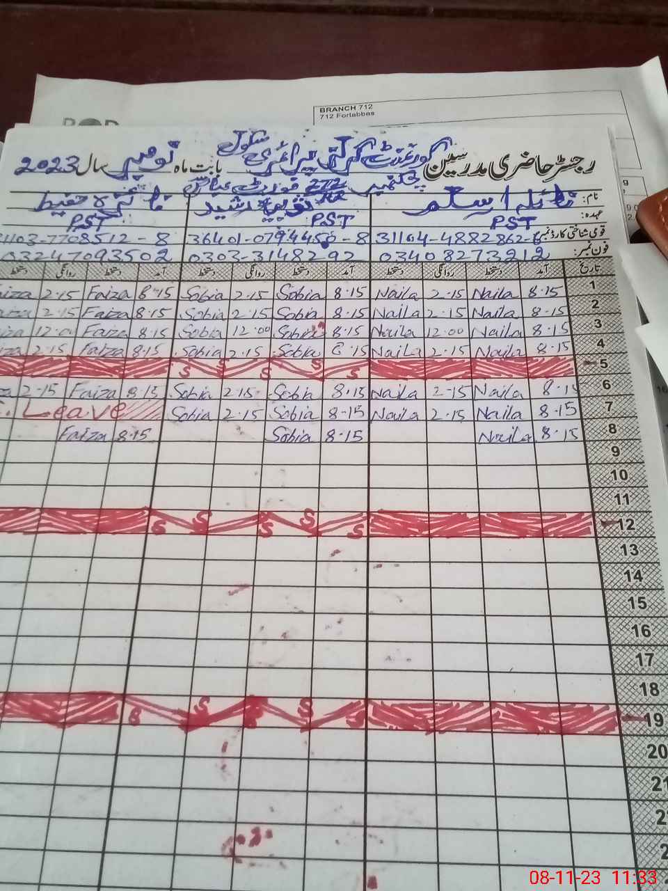 | Name: Fa**** Ha**** Designation: (School Headmaster's/Headmistress's) PST Phone/Cell Number: 03**** |