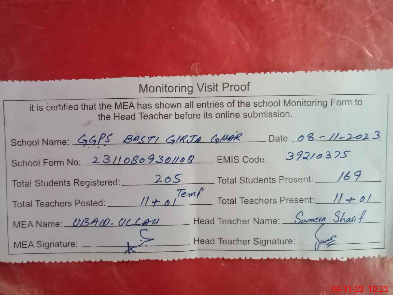 | EMIS Code: 39210375 | Name of School: GGPS BASTI GIRJA GHAR | |||