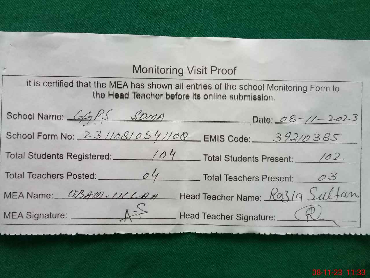 | EMIS Code: 39210385 | Name of School: GGPS CHAK SOMA | |||