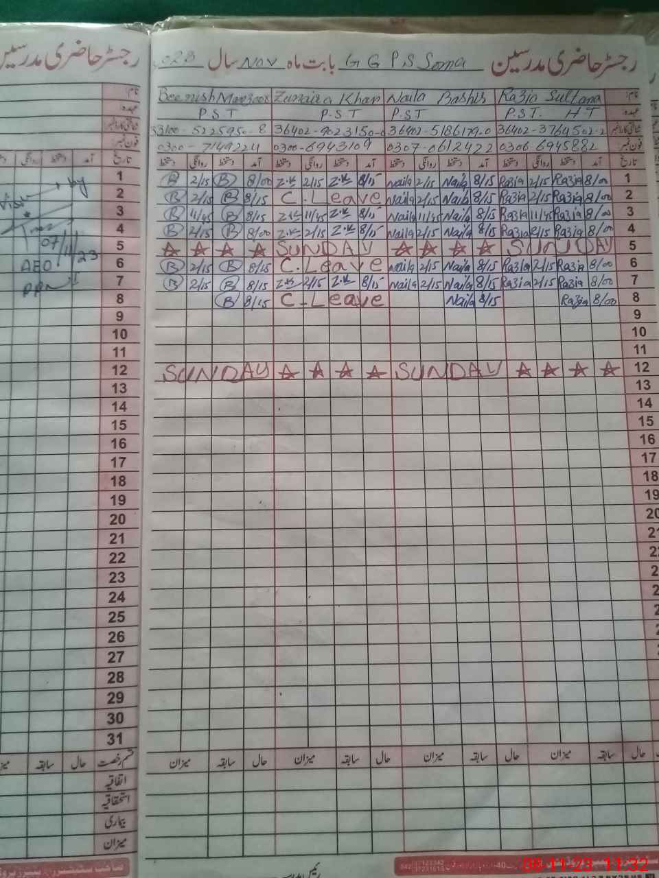 | Name: Zu**** Kh**** Designation: (School Headmaster's/Headmistress's) PST Phone/Cell Number: 03**** |