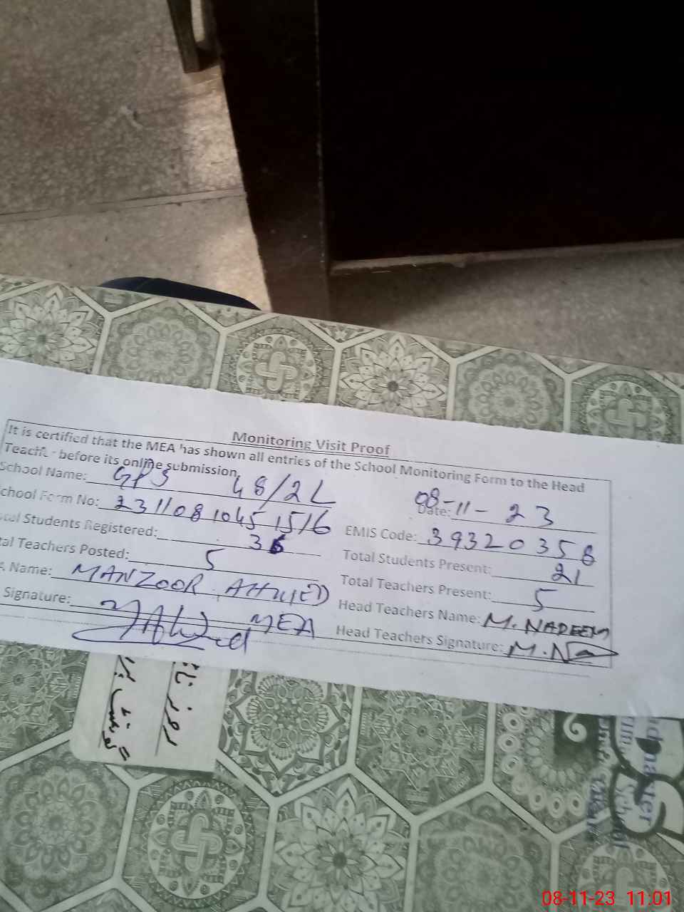 | Name: Ak**** Al**** Designation: (School Headmaster's/Headmistress's) PST Phone/Cell Number: 03**** |