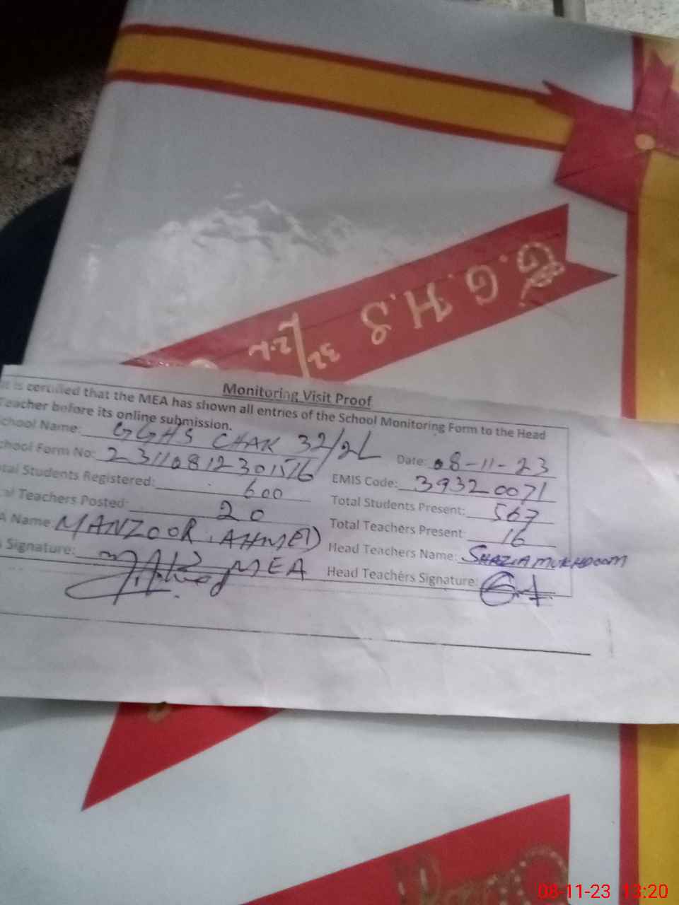 | EMIS Code: 39320071 | Name of School: GGHS CHAK NO. 32/2-L | |||