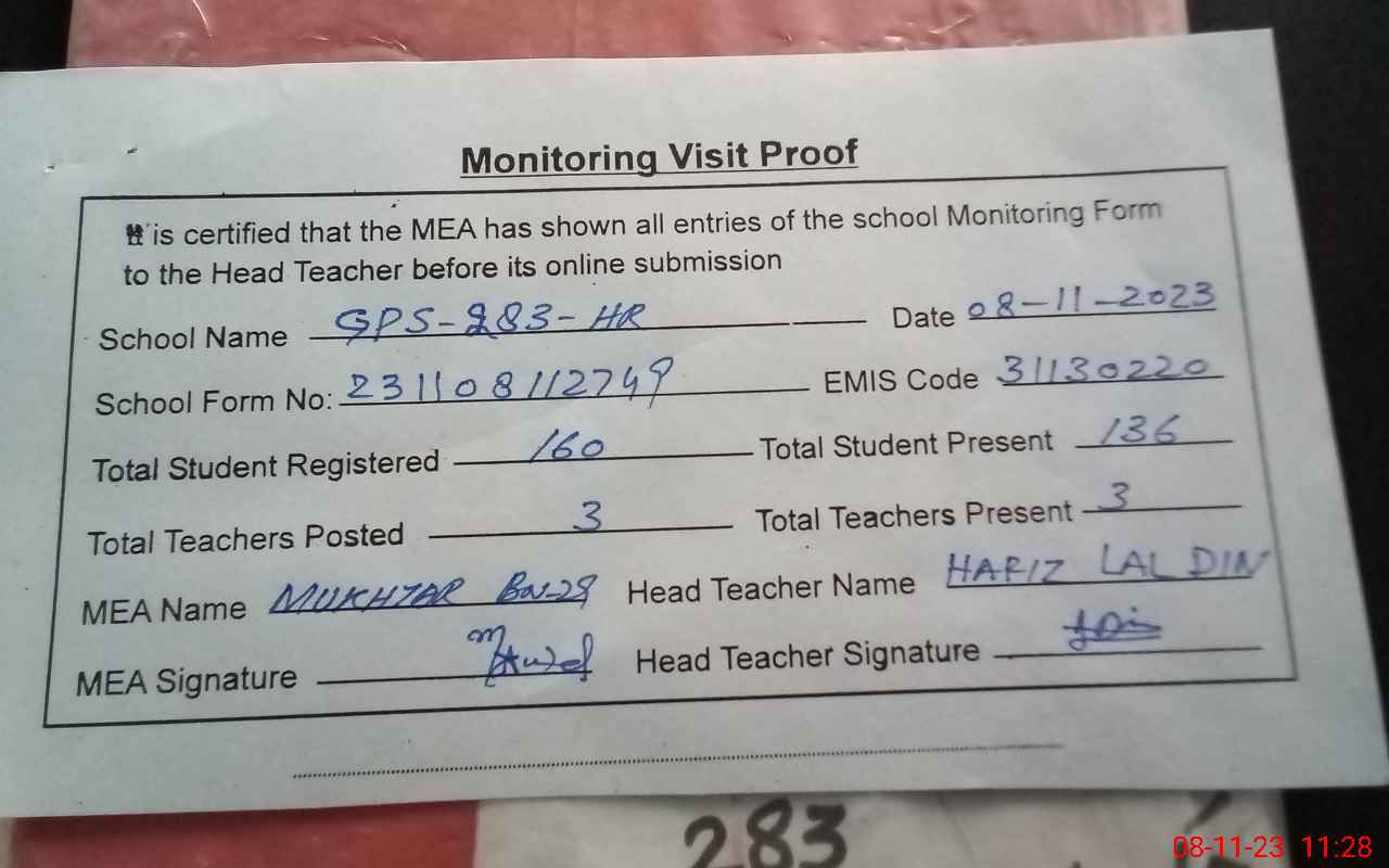 | EMIS Code: 31130220 | Name of School: GPS CHAK 283 HR | |||