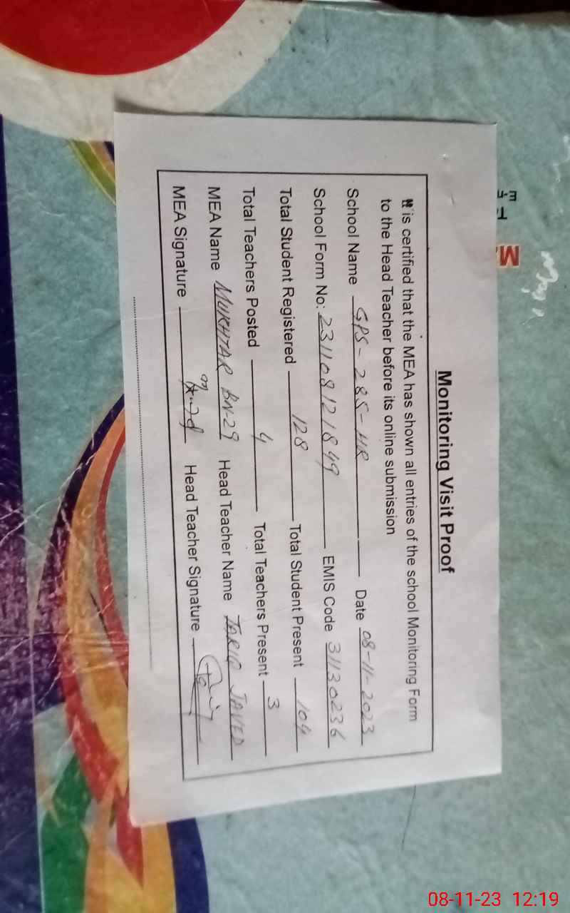 | EMIS Code: 31130236 | Name of School: GPS CHAK NO 285 HR | |||