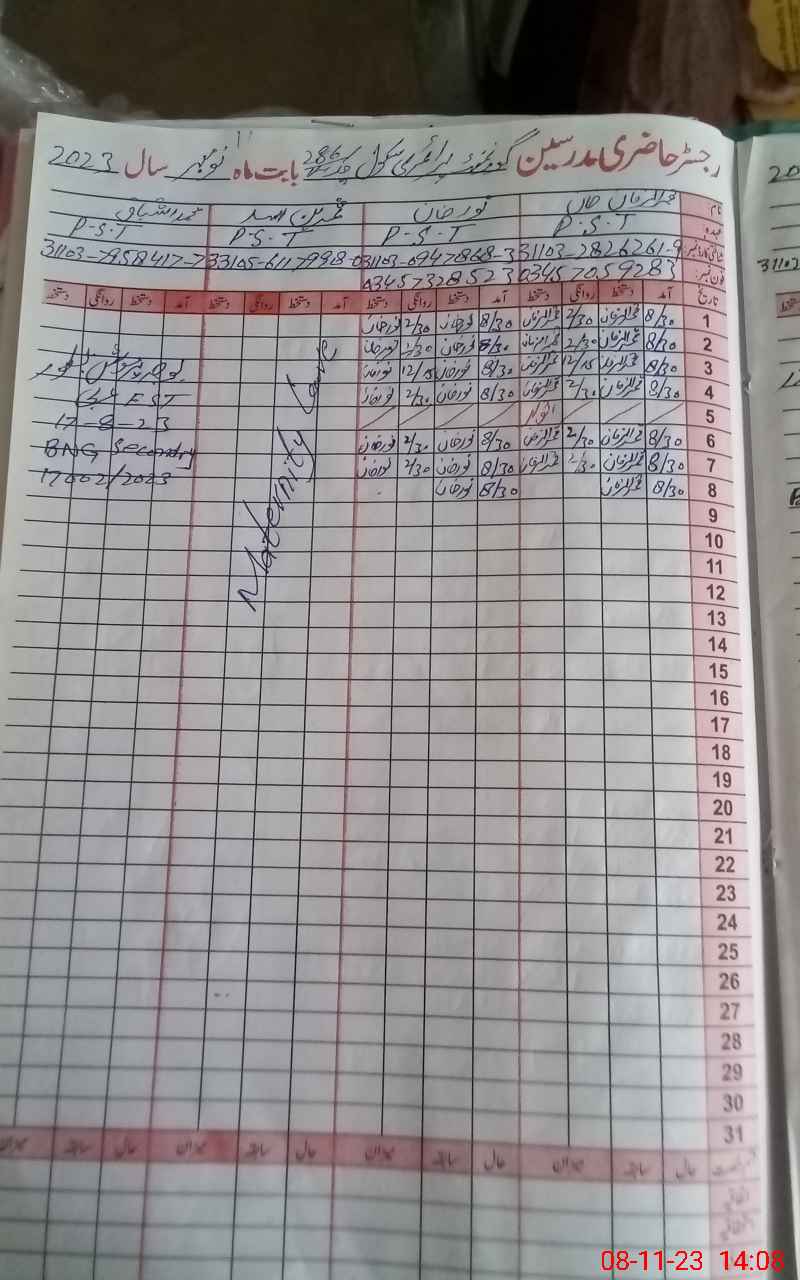 | Name: QA**** ZA**** Designation: (School Headmaster's/Headmistress's) PTC/JV Phone/Cell Number: 03**** |