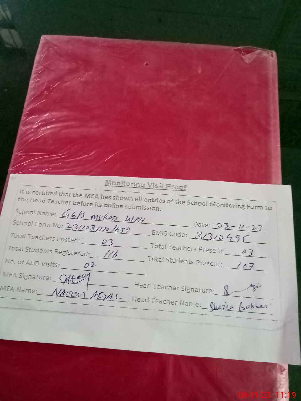 | EMIS Code: 31310495 | Name of School: GGPS MURAD WAH | |||