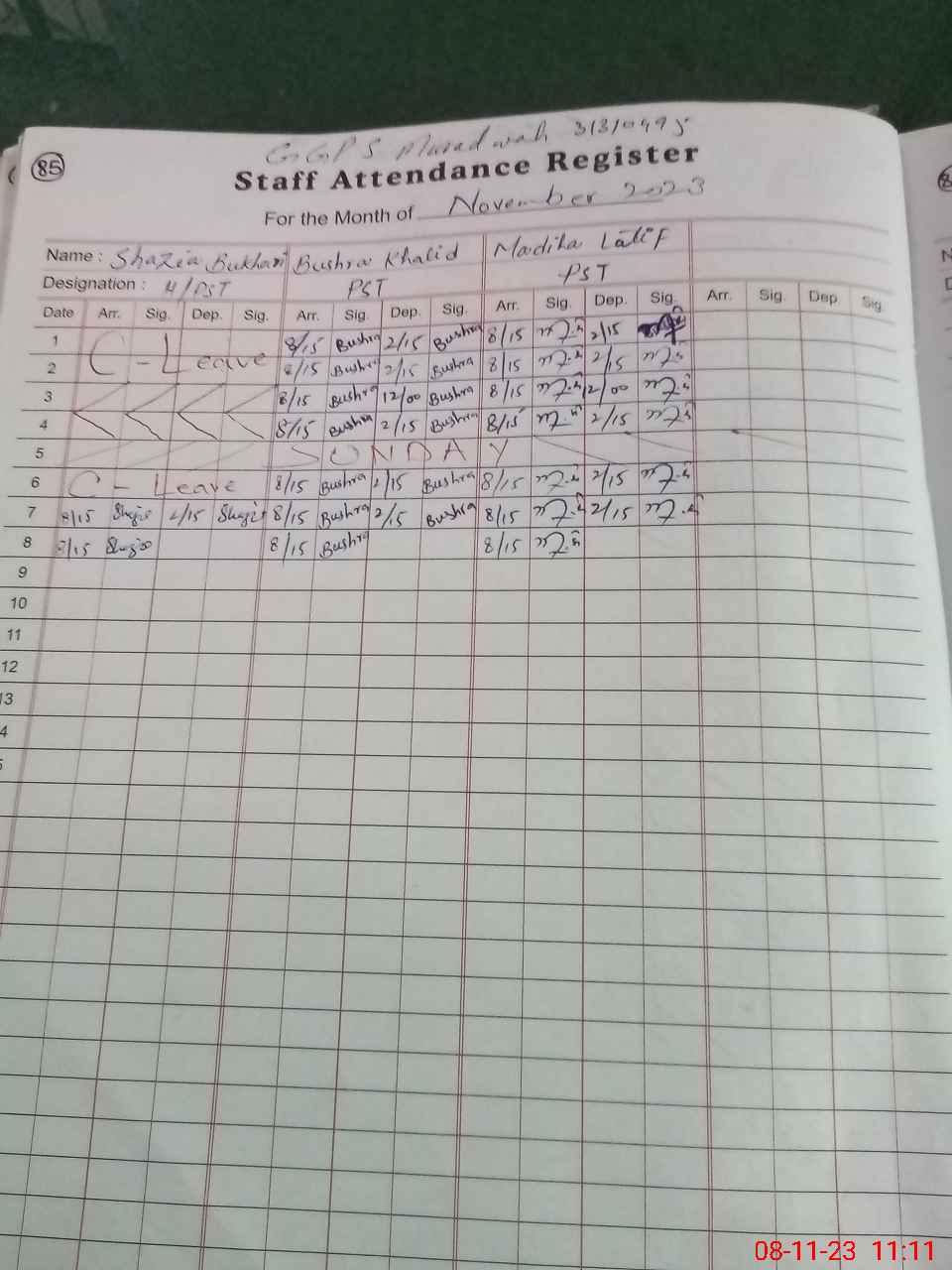 | Name: SH**** BU**** Designation: (School Headmaster's/Headmistress's) PST Phone/Cell Number: 03**** |