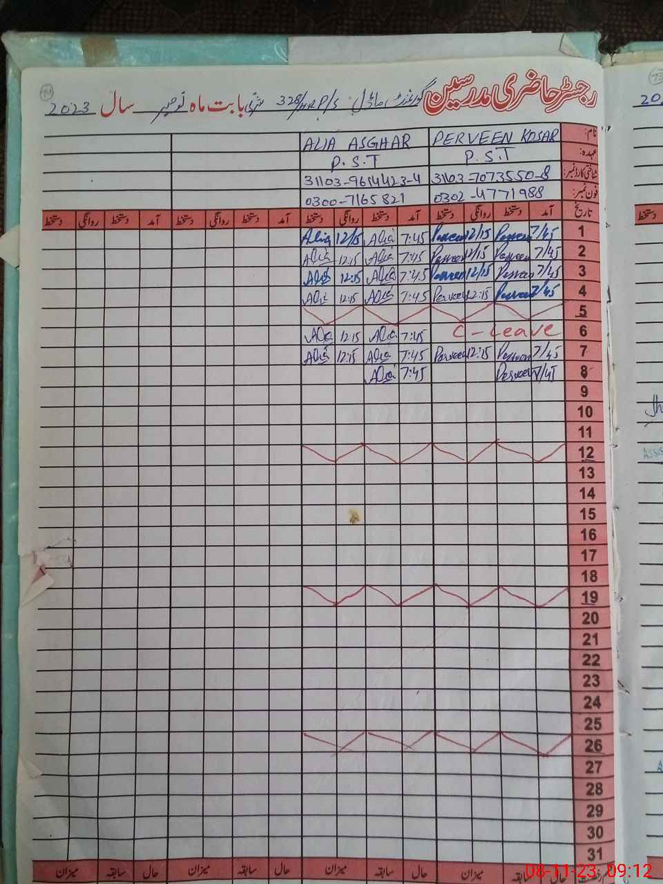 | CNIC | Full Name | Designation | R/C | Absence During Last Calender Month |