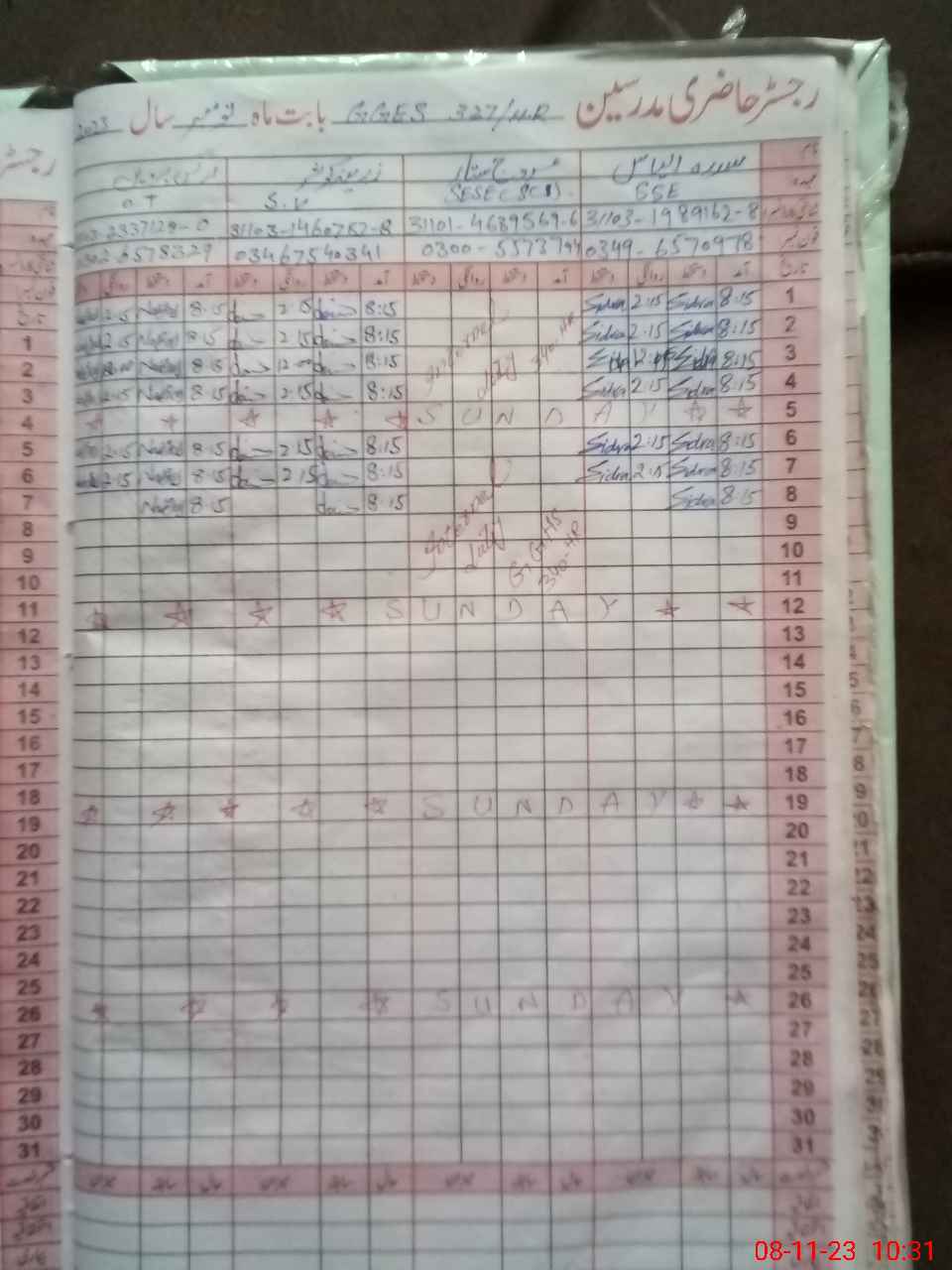 | Name: SI**** IL**** Designation: (School Headmaster's/Headmistress's) SSE ENGLISH Phone/Cell Number: 03**** |