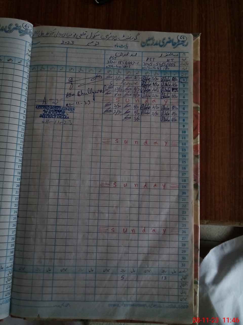 | Name: Ab**** Gh**** Designation: (School Headmaster's/Headmistress's) PST Phone/Cell Number: 03**** |