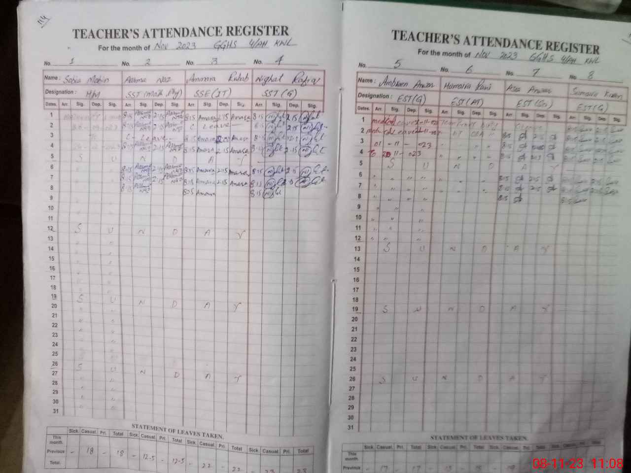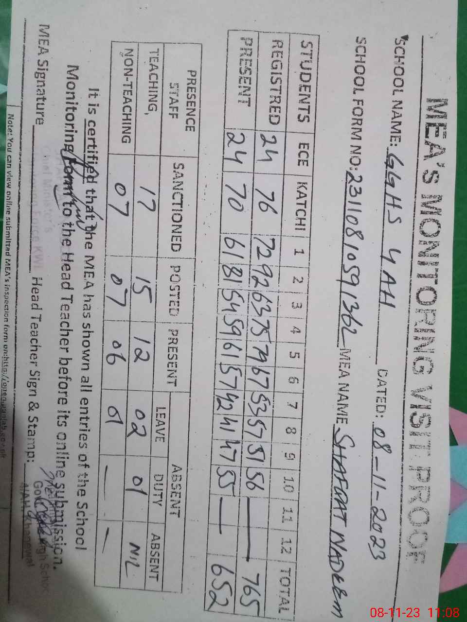 | Monitoring Date: 08-11-2023 | Start Time: 08-11-2023 10:13 AM | End Time: 08-11-2023 11:08 AM | Name of MEA: Sh**** Na**** | |