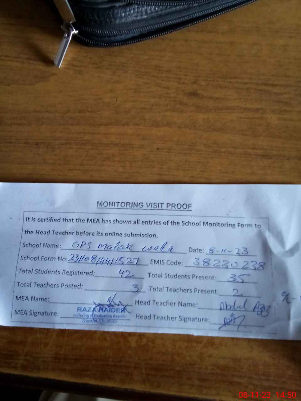 | EMIS Code: 38230238 | Name of School: GPS MALIK WALA | |||