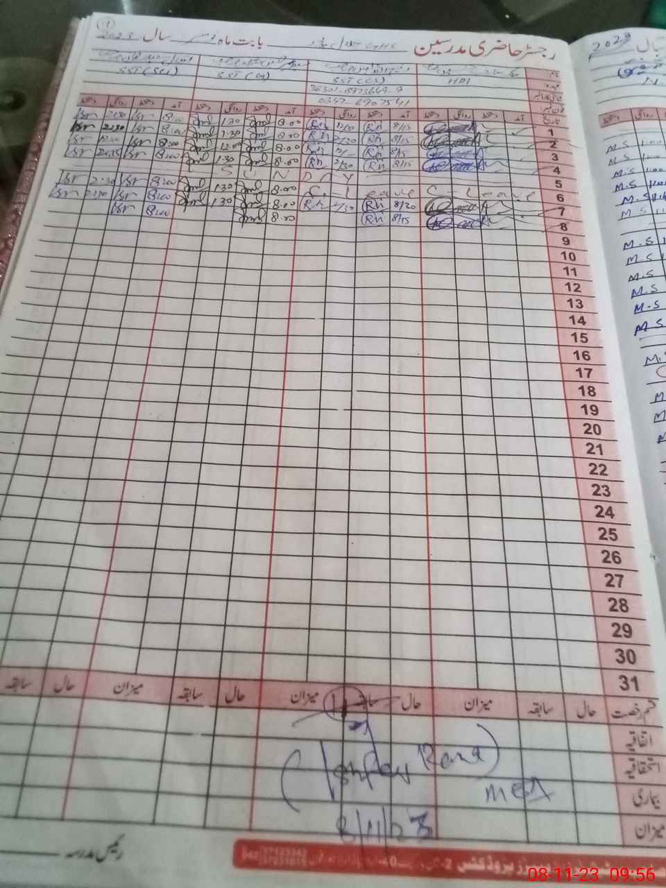 | CNIC | Full Name | Designation | R/C | Absence During Last Calender Month |