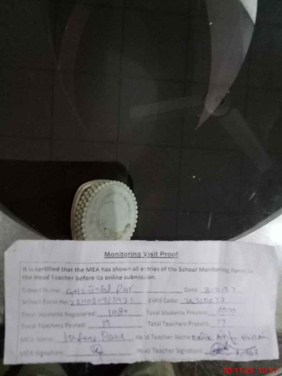 | Attendance Register | Head Teacher | MEA with School | Visit Proof |
