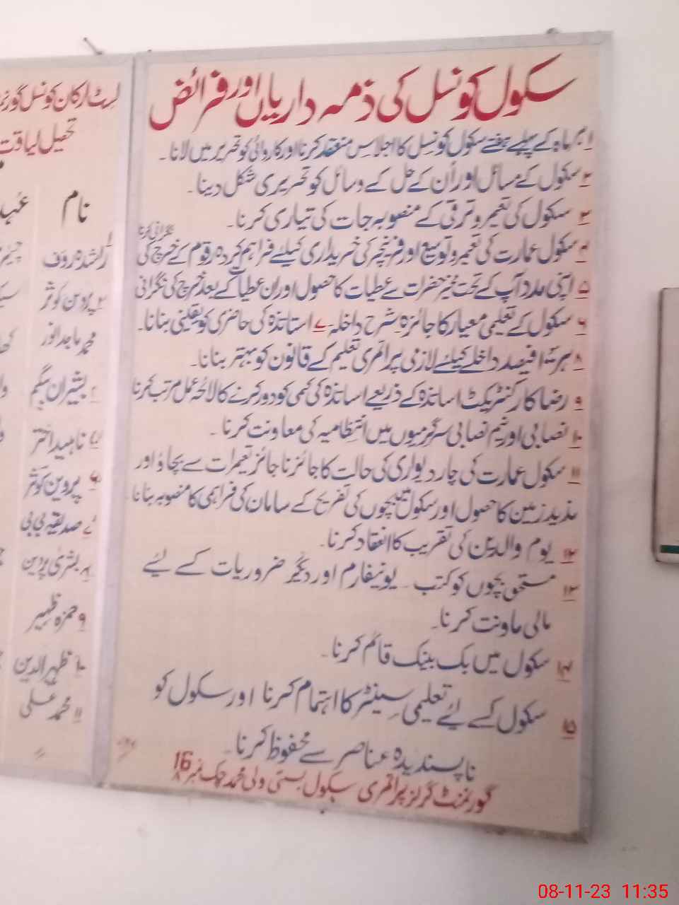 | EMIS Code: 31320510 | Name of School: GGPS CHAK NO.16/A BASTI WALI MUHAMMAD | |||