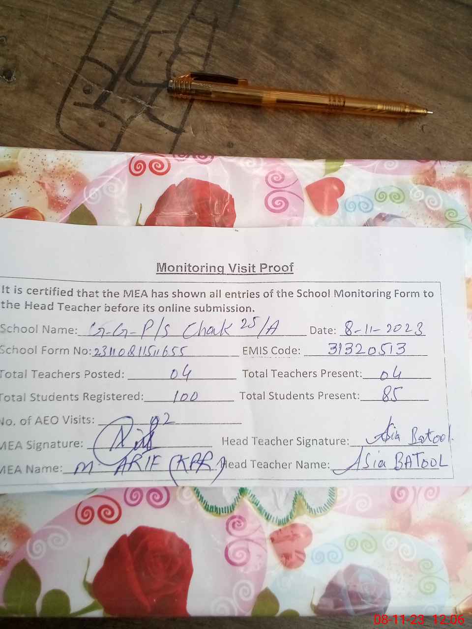 | EMIS Code: 31320513 | Name of School: GGPS CHAK NO.25/A | |||