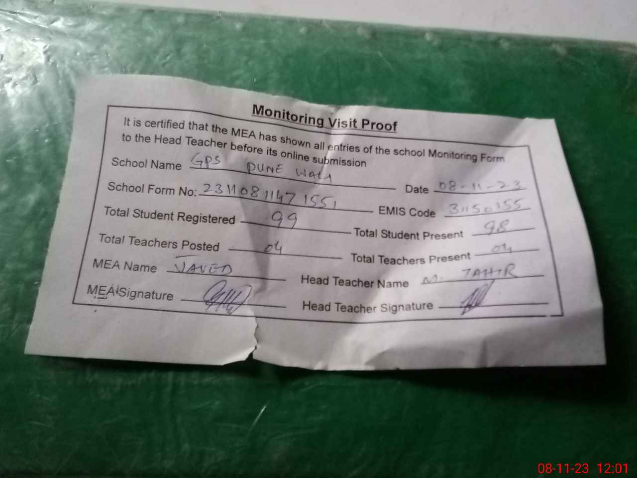 | EMIS Code: 31150155 | Name of School: GPS PUNA WALI | |||