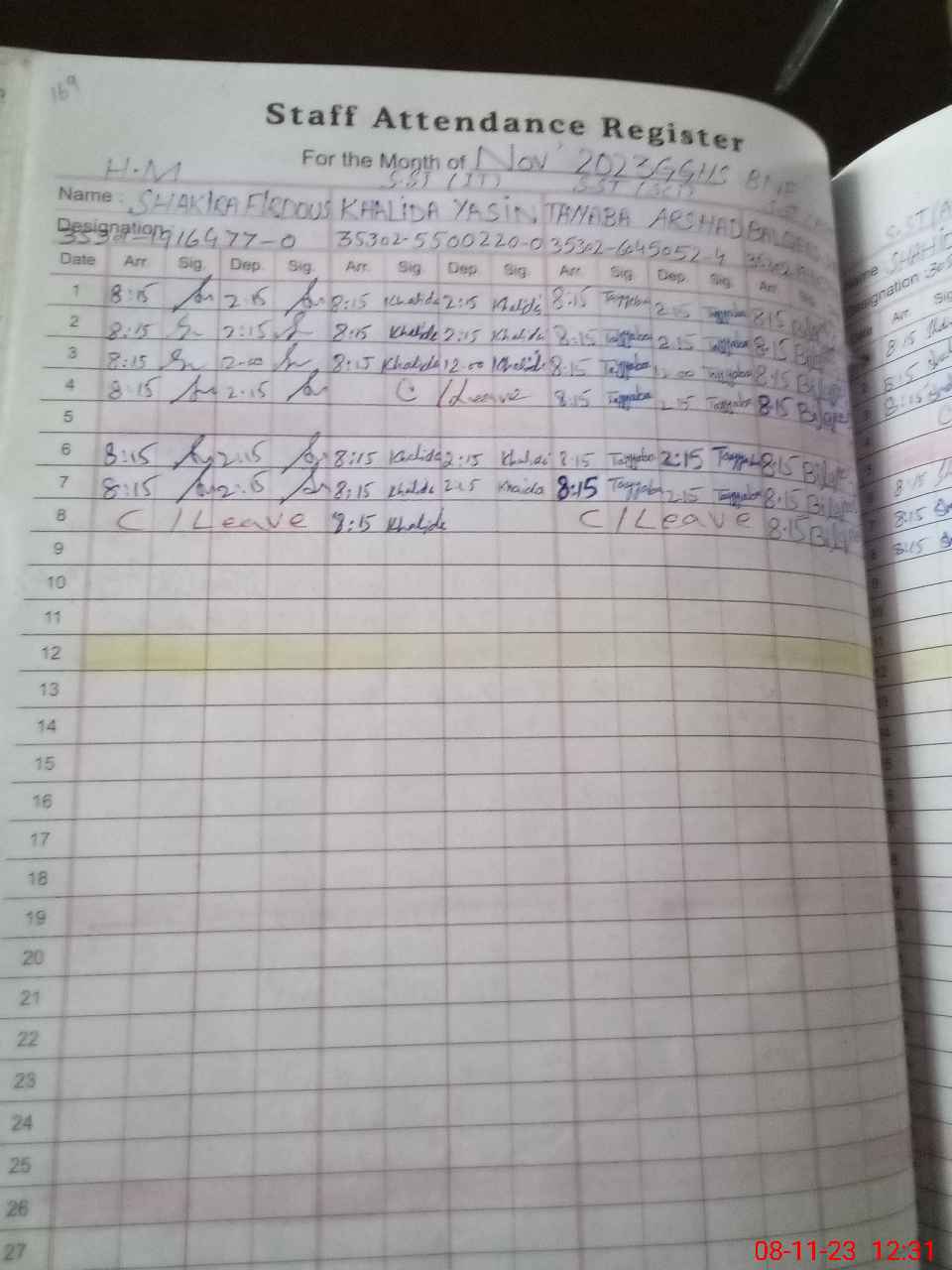 | Name: Kh**** Ya**** Designation: (School Headmaster's/Headmistress's) ic HM Phone/Cell Number: 03**** |