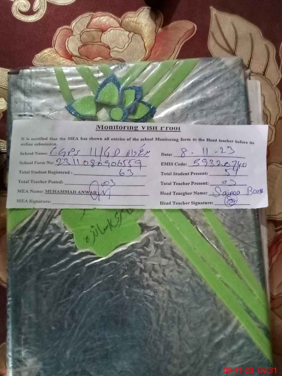 | EMIS Code: 39320740 | Name of School: GGPS 11/G.D BUDHAY WALA | |||