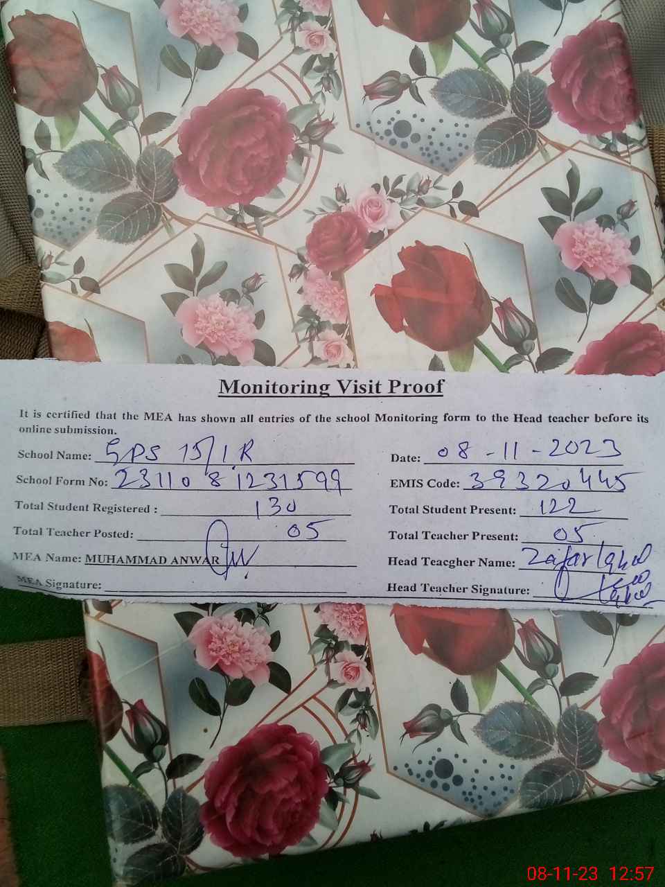 | EMIS Code: 39320445 | Name of School: GPS CHAK NO. 15/1-R | |||